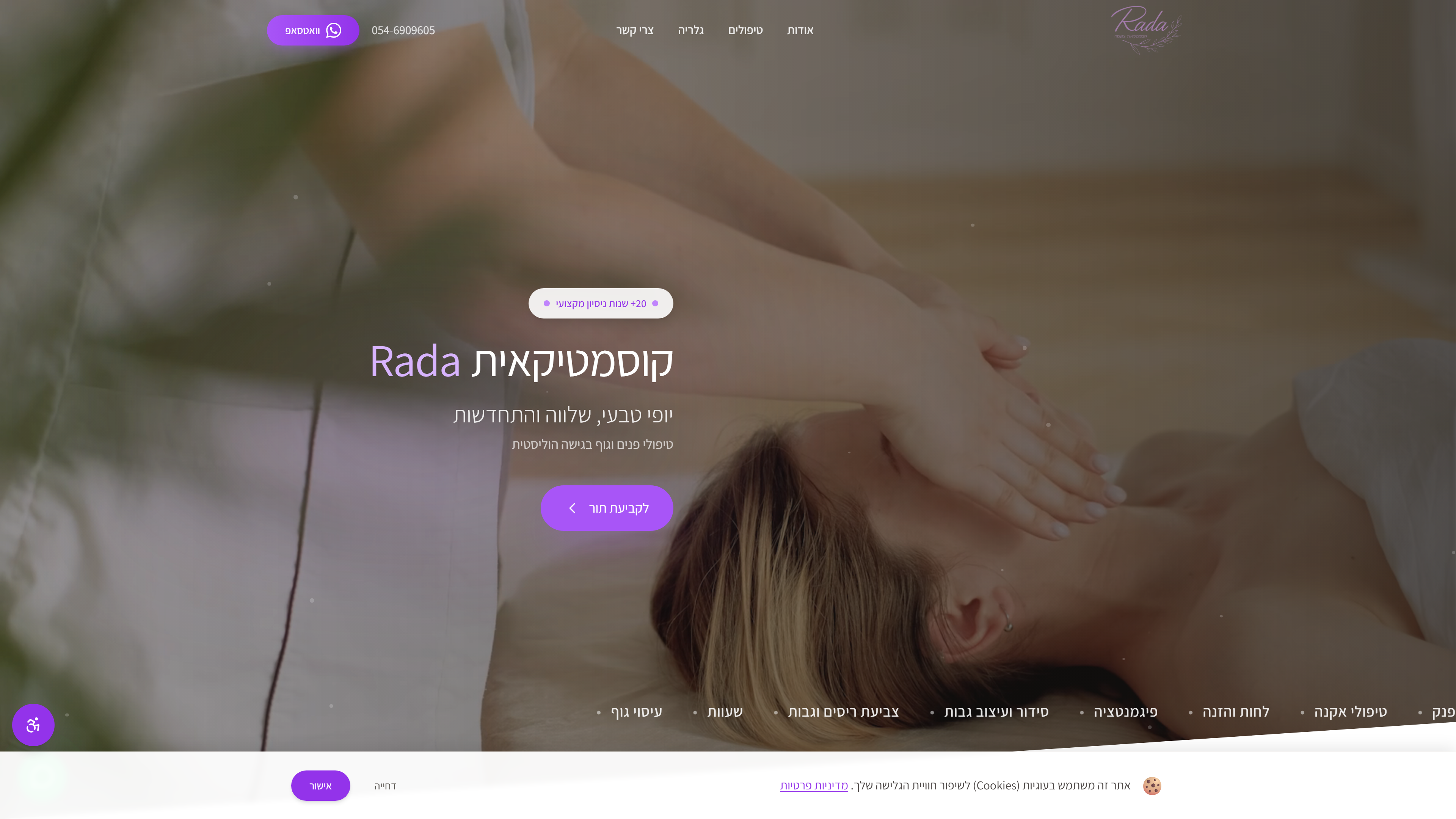 דף נחיתה מקצועי למכון קוסמטיקה בעיצוב מודרני ואלגנטי, כולל סרגל נגישות מתקדם ואנימציות חלקות